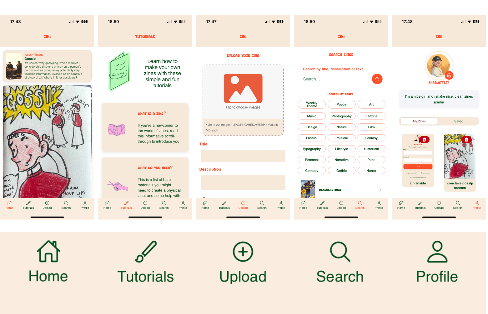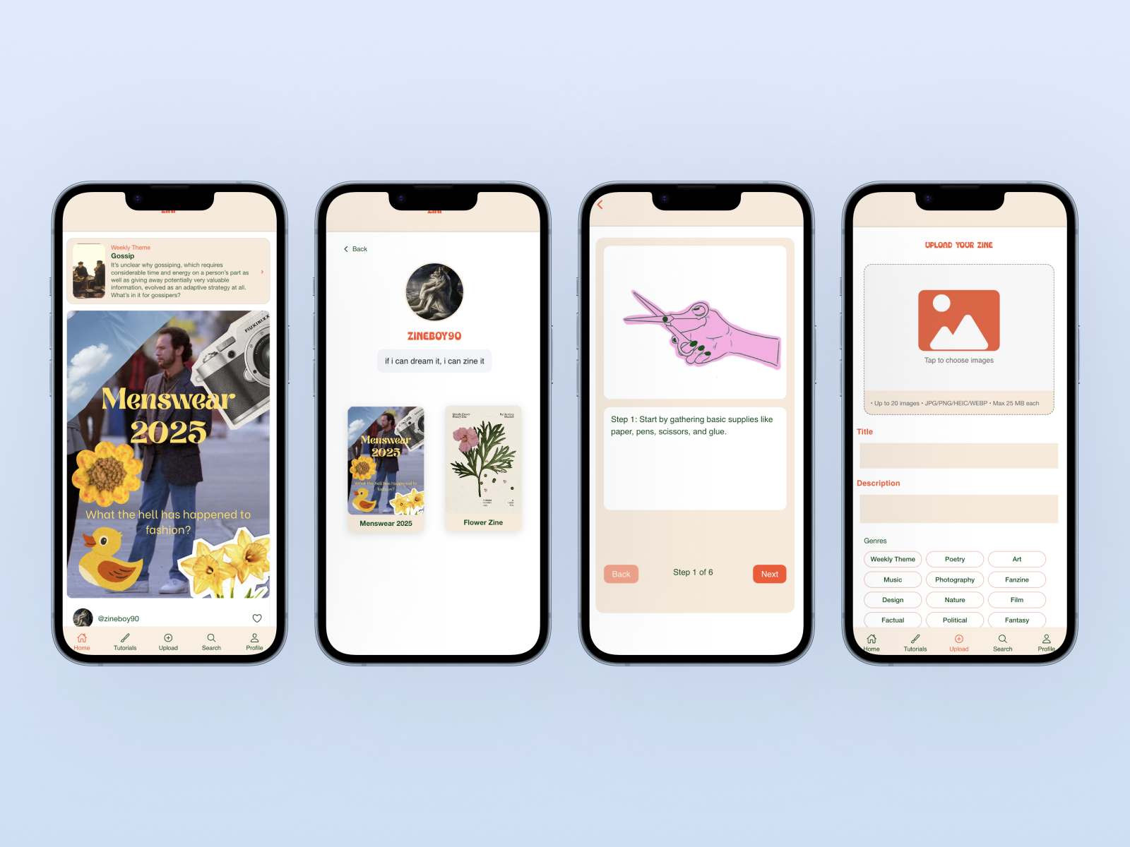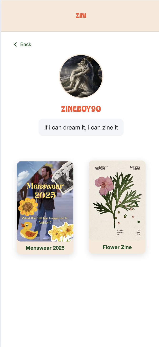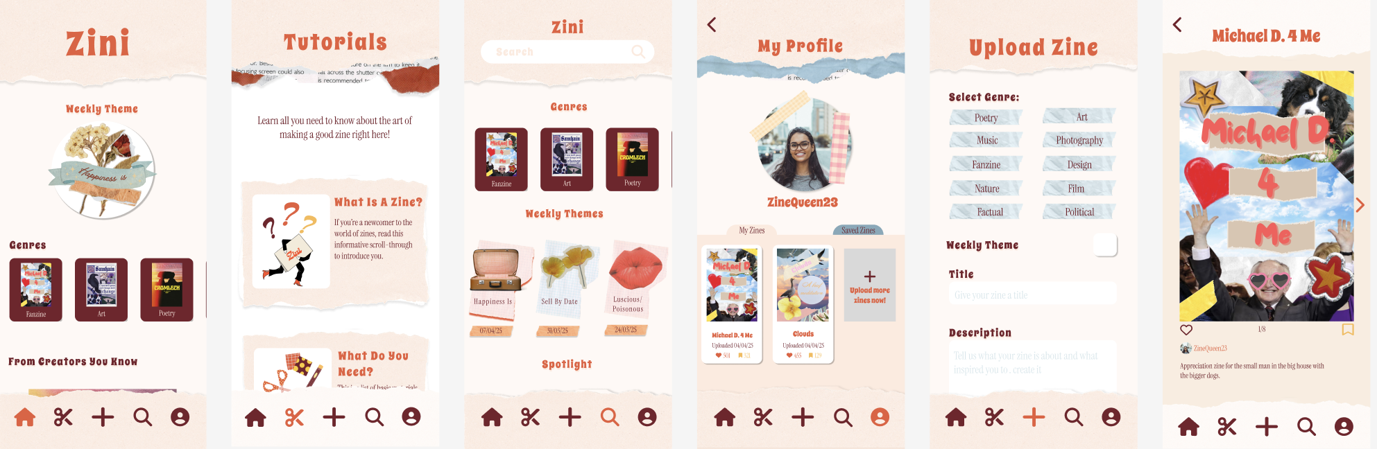 Zini is a mobile application designed to support the creation and sharing of zines within a digital creative community. Zines are self-published works that are typically handmade and produced in small batches. They often take the form of small booklets or pamphlets and can explore a wide range of topics, including art, music, politics, and personal storytelling. Because there are no strict rules around format or content, zines have long been used as an accessible and low-pressure creative outlet. Zini translates this traditionally physical medium into a digital platform where users can create, upload, share, and discover zines. The goal of the app is to provide an inclusive space where people can express creativity without needing advanced artistic skills.